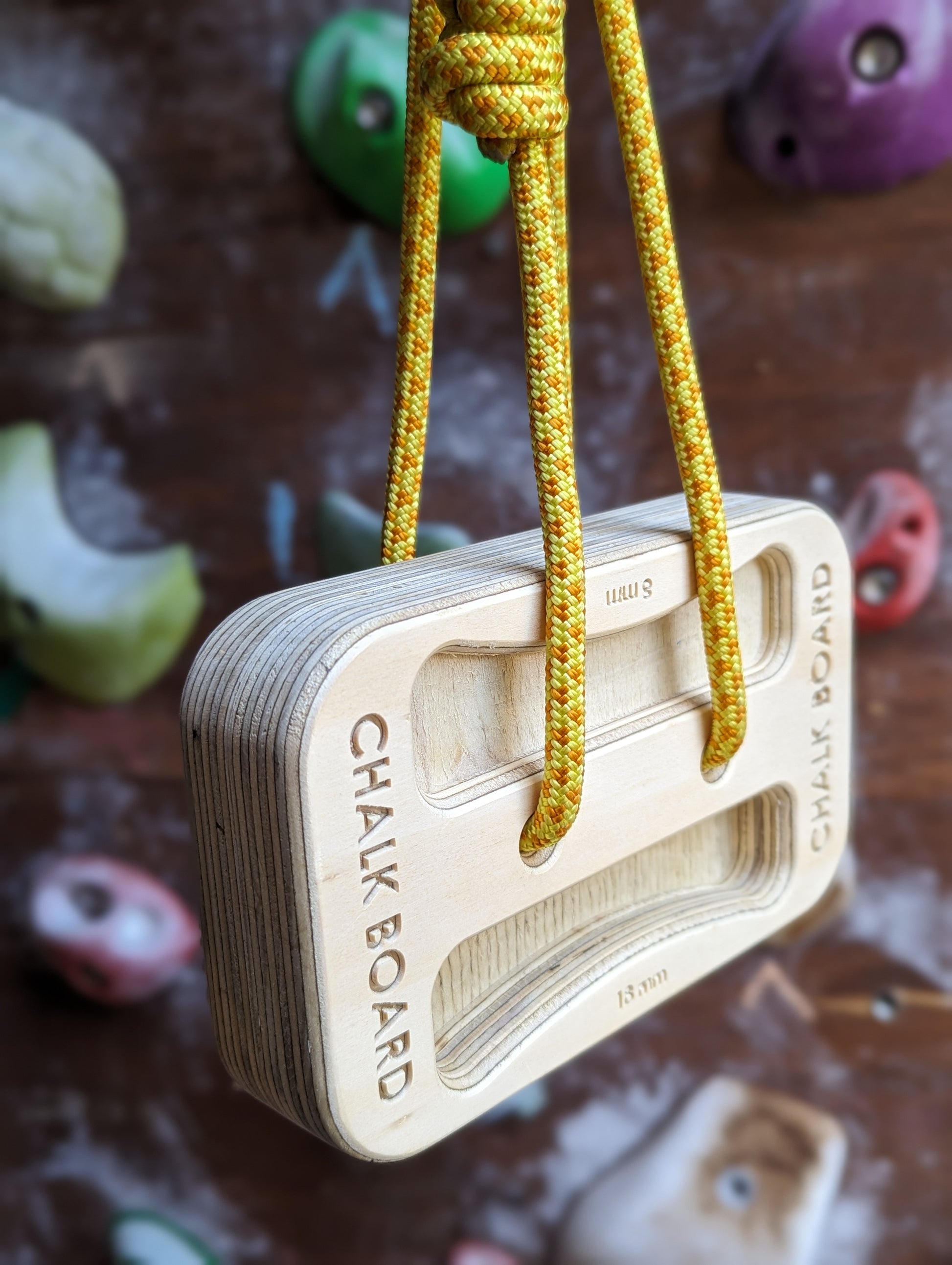 Introducing Jim, the Chalk Board Jim originated when I created the first prototypes with the helpful advice from Jimsy (Jim). It is compact and convenient, meaning it works great for warm ups and strength training. Pockets range from 8 mm to 18 mm with options for 2 finger and 3 finger pockets. The curved edge aids in preventing finger injuries which are never fun. Snag a CB Jim for yourself and one day maybe you will be as strong as him.